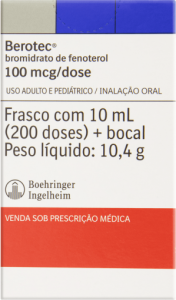 O Berotec 100mcg aerossol 10ml (200 doses), cujo princípio ativo é o bromidrato de fenoterol, é um medicamento broncodilatador indicado para o tratamento de sintomas de asma e bronquite obstrutiva crônica. Sua venda requer prescrição médica.