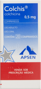 Colchis 0,5mg 20 Comprimidos (colchicina) é um medicamento anti-inflamatório de venda sob prescrição médica (tarja vermelha) utilizado principalmente para o tratamento e prevenção de crises agudas de gota.