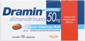 O Dramin Capsgel 50mg em embalagem com 10 cápsulas moles é um medicamento antiemético à base de dimenidrinato, utilizado para prevenir e tratar sintomas de enjoo, náuseas, tontura e vômitos em geral.