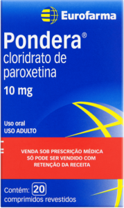 Pondera 10mg com 20 comprimidos revestidos é um medicamento antidepressivo (tarja vermelha com retenção de receita) à base de cloridrato de paroxetina, indicado para o tratamento de diversos transtornos psiquiátricos em adultos.